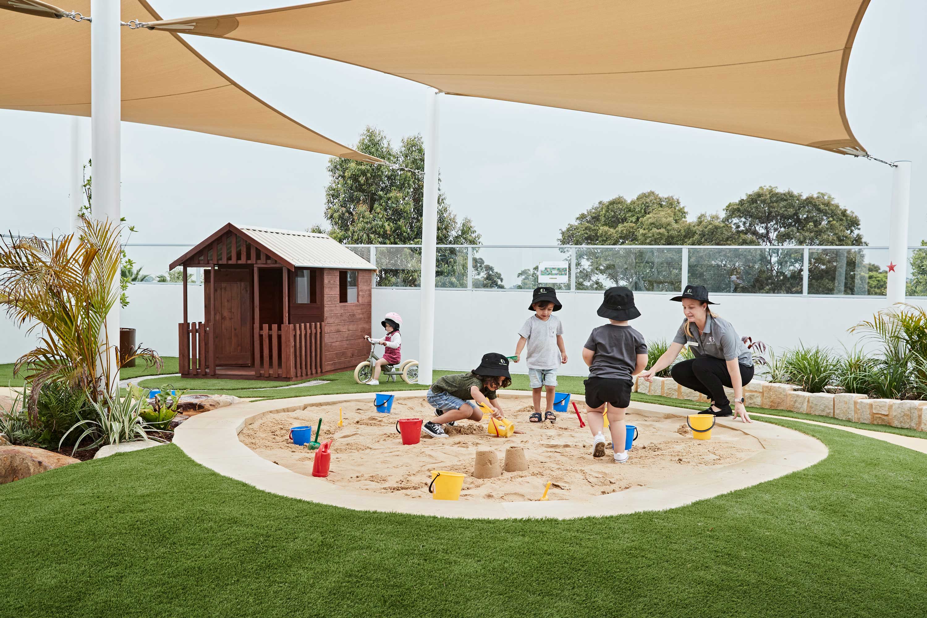 Outdoor play forms an important part of our curriculum and the Grove Develop Program. On a daily basis children utilise our outdoor yards for free play, relaxation and learning experiences/activities, all of which touch on the following Grove Develop Program aspects: Grove Fitness, Grove Health, Grove Confidence and Grove Learning.